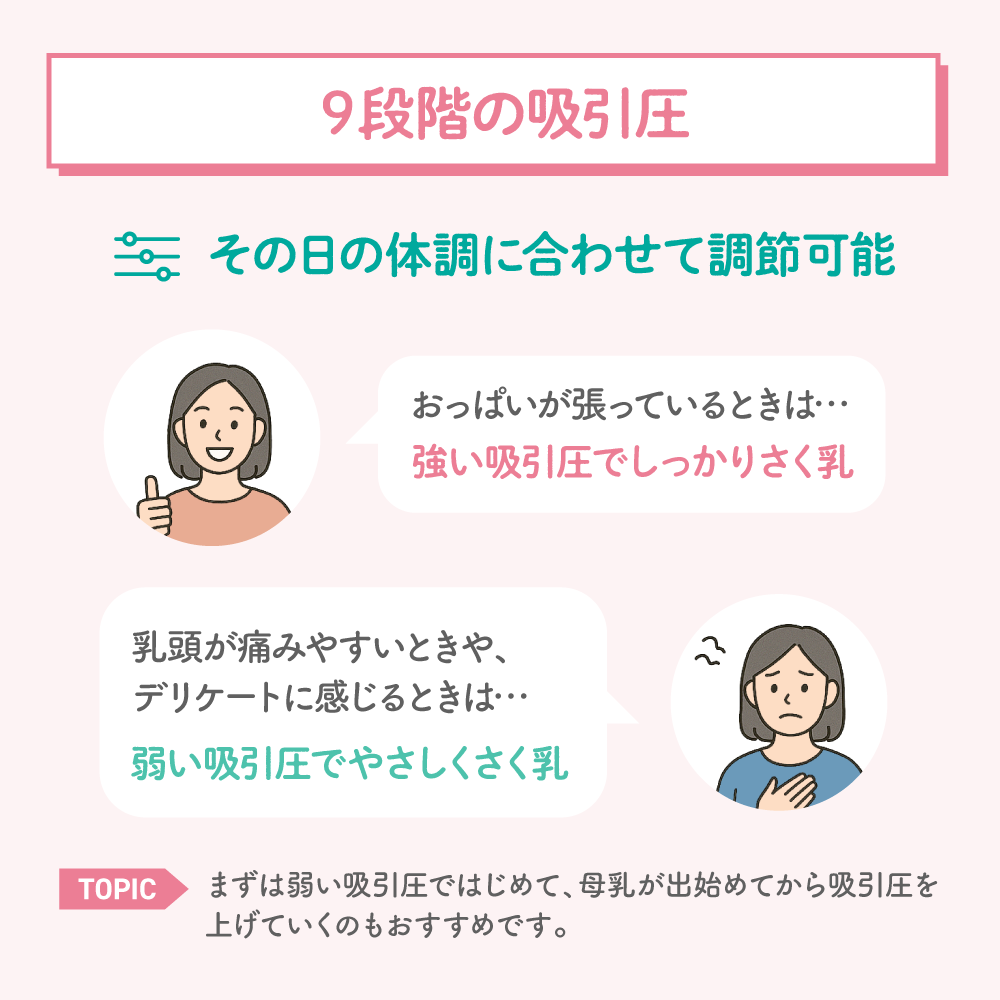 ・9段階の吸引レベルで、好みに合わせた調整が可能