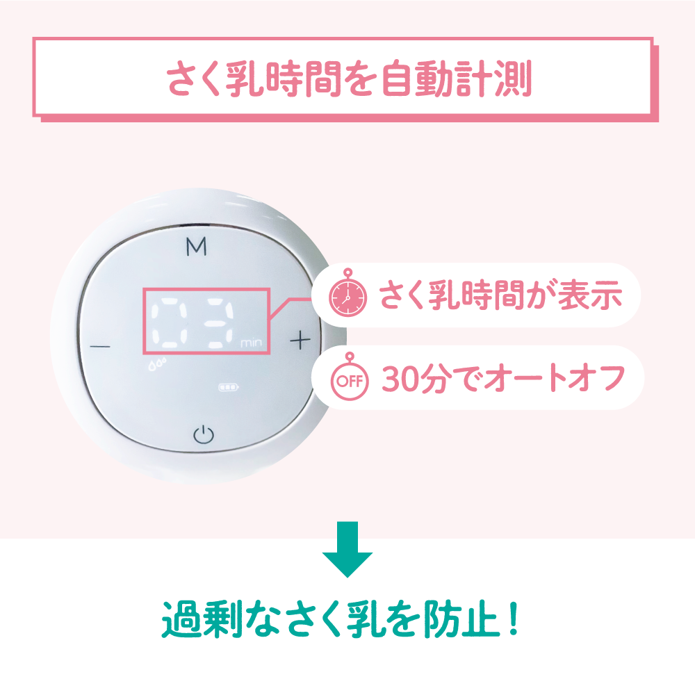 ・さく乳時間の自動計測機能搭載、30分でオートオフ