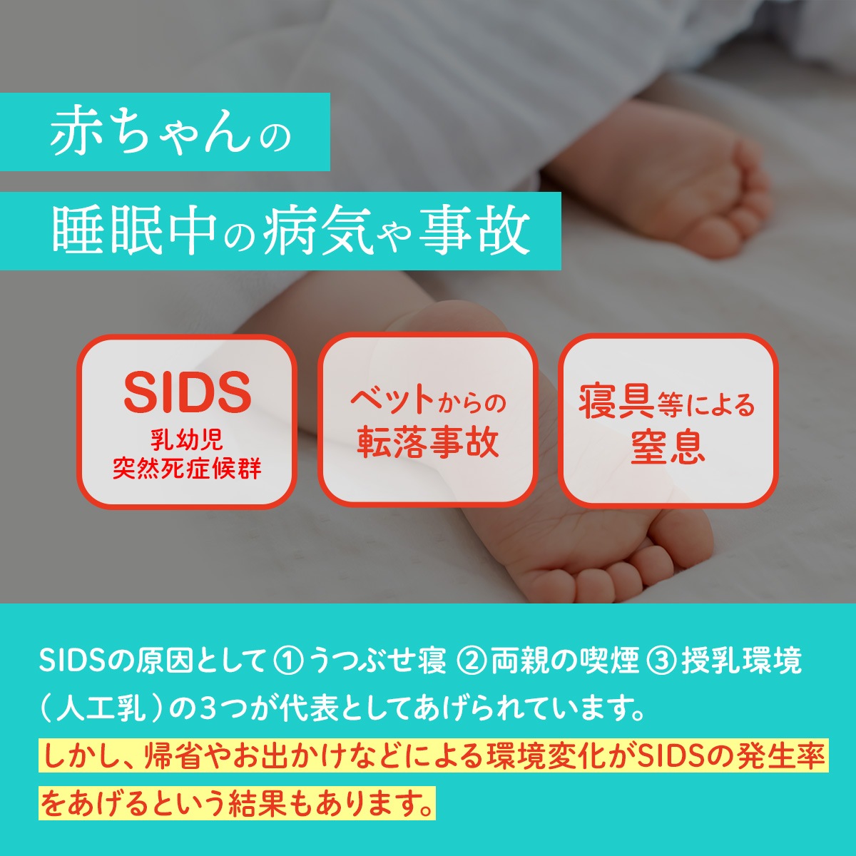 ※乳幼児突然死症候群(SIDS)の予防や睡眠障害(睡眠時無呼吸等)の病気の評価に用いる機器ではありません。