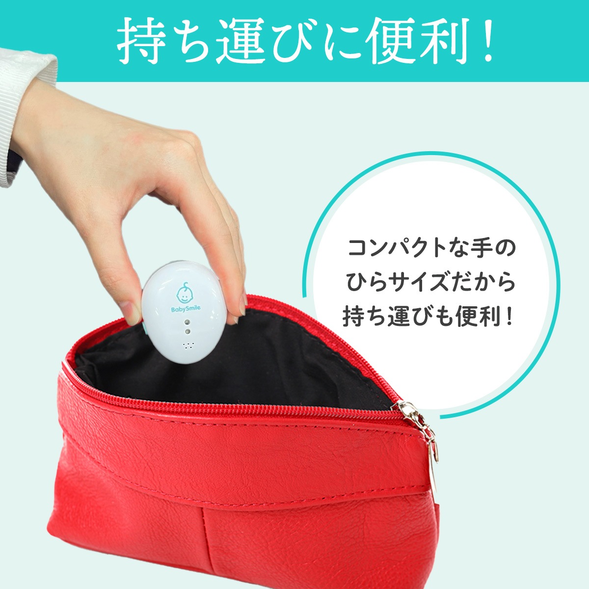 おむつに着けるだけのカンタン装着で、誰でもすぐにお使いいただけます。コンパクトな手のひらサイズだから、帰省時や旅先への持ち運びにも便利です。
