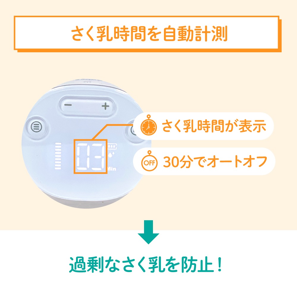 ・さく乳時間の自動計測機能搭載、30分でオートオフ