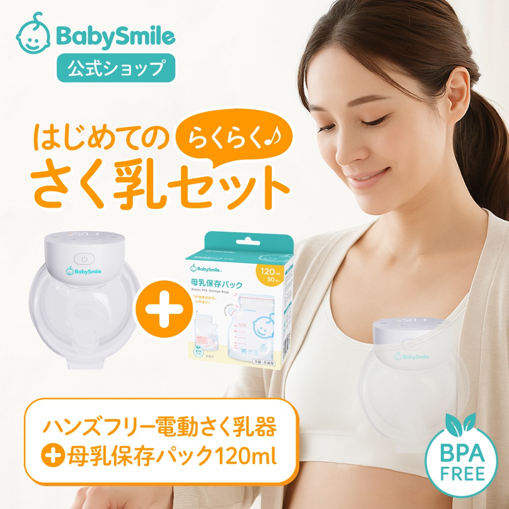 はじめてのらくらくさく乳セット(ハンズフリー電動さく乳器 E-401+母乳保存パック120ml E-406)