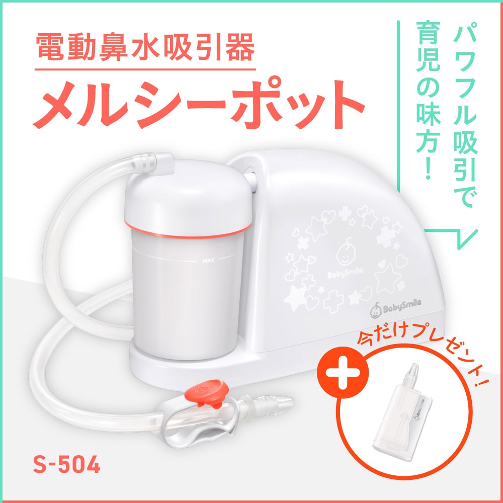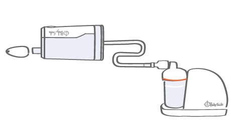 鼻水吸引器「メルシーポット」のチューブ先端につければ、ひかる君が鼻水をキャッチ。